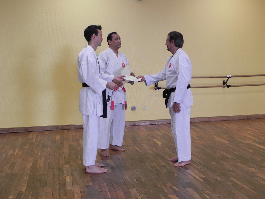 Remise du diplôme du club de la ceinture noire 1er et 4e dan au dojo