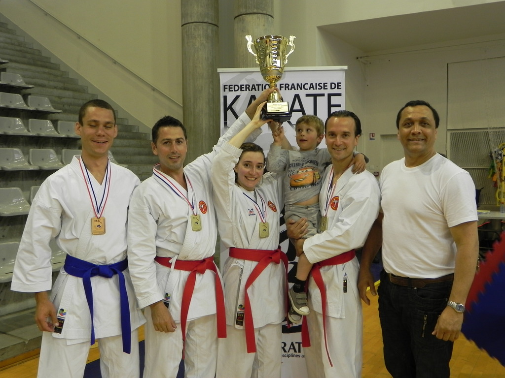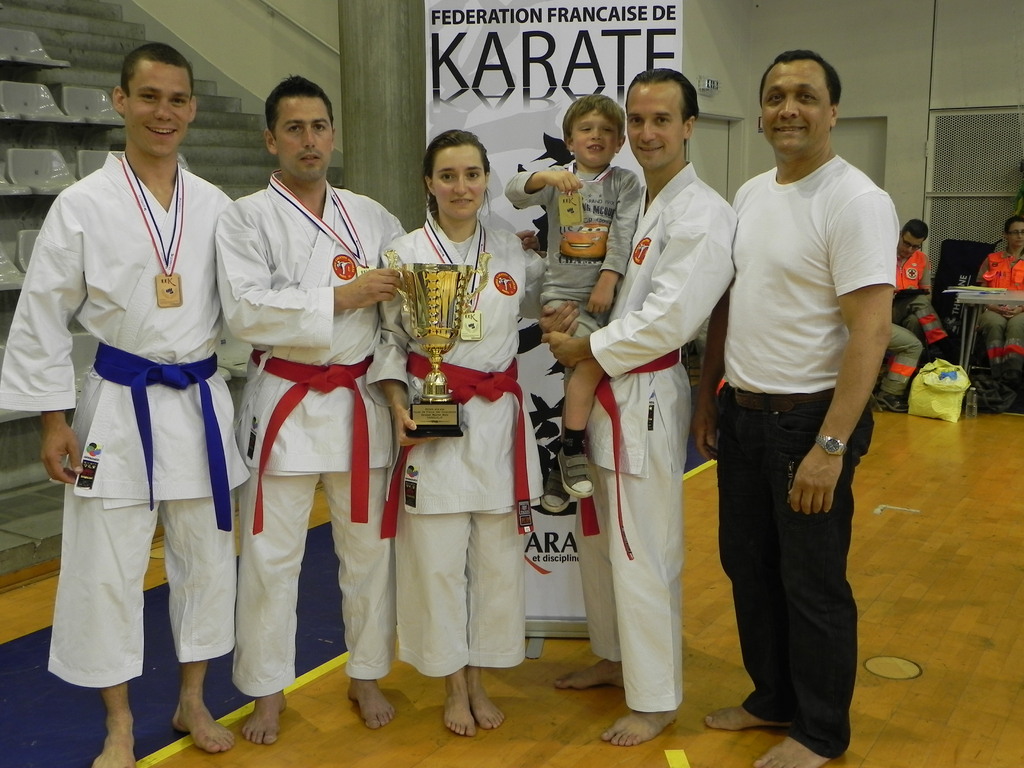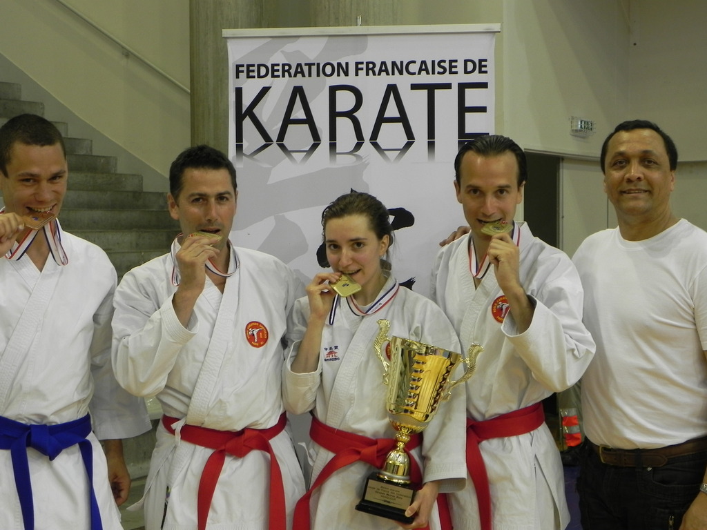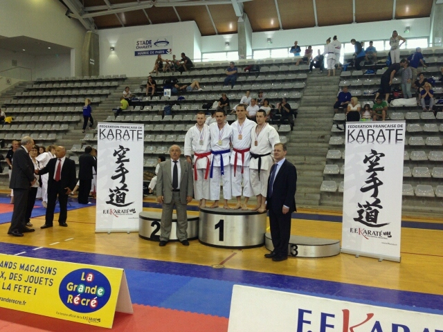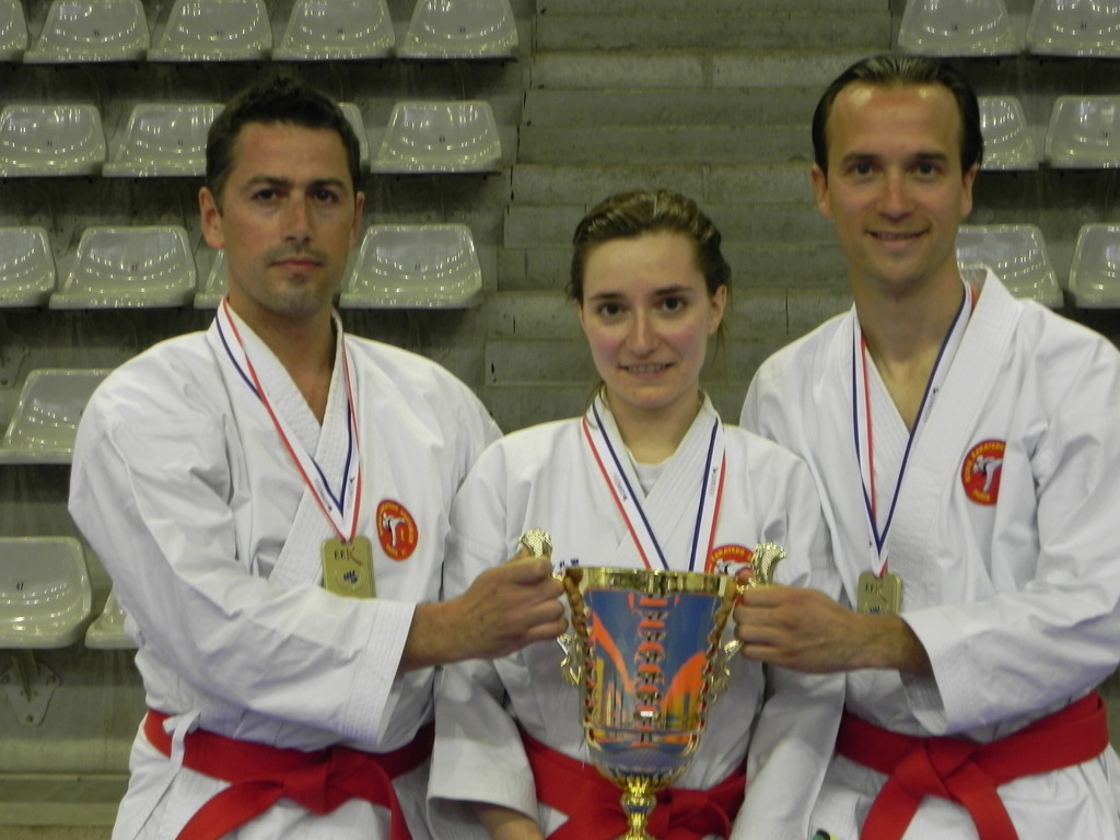 L'équipe mixte kata du club EKS Paris XI était sur la plus haute marche du podium hier à Charléty à Paris. La médaille d'Or pour l'équipe ,Olivier HERTU Agathe GILLET, Olivier CLEF au championnat de France Corporatif 2014.