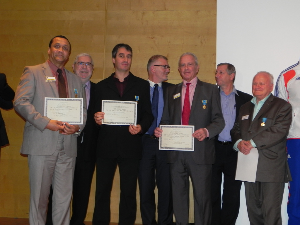 Journée exceptionnelle pour le Sensei Brice GARDEBIEN 6e dan de karaté, il a été décoré de la médaille d'Or de la Jeunesse et des Sports et de la Cohésion Sociale pour l'ensemble de sa carrière dans le mouvement sportif à Paris le 28 novembre 2014 au siè