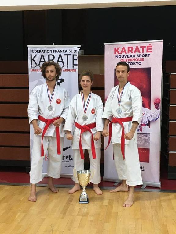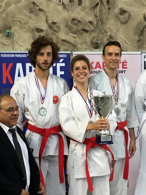 Édition 2017, l'équipe kata mixte Olivier , Débora, Olivier , Vice championne à la Coupe de France Corporatif
