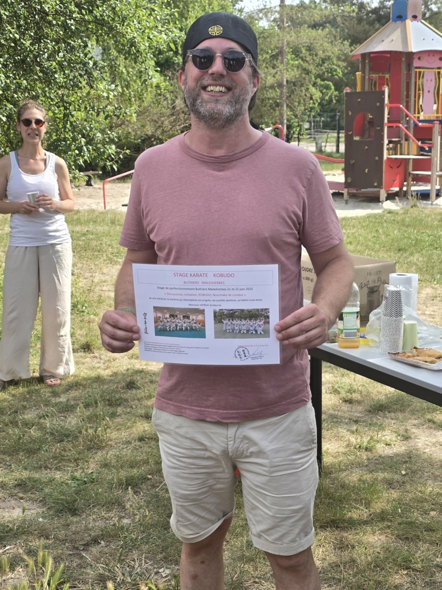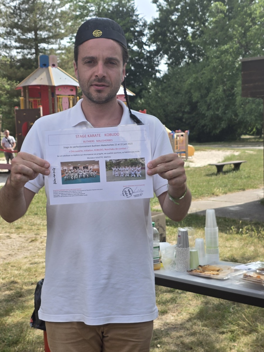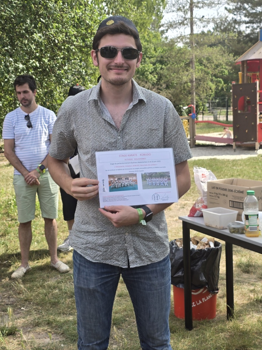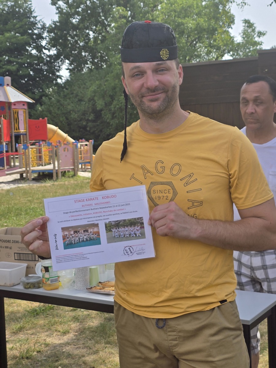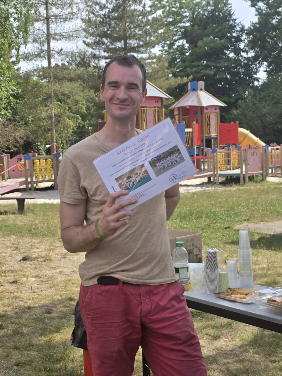 Remise traditionnelle de diplôme de fin de stage lors du 30eme séminaire à Buthiers Malesherbes par le Sensei Brice GARDEBIEN