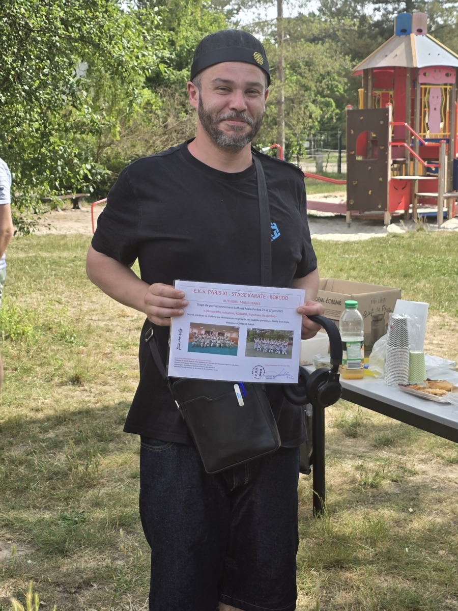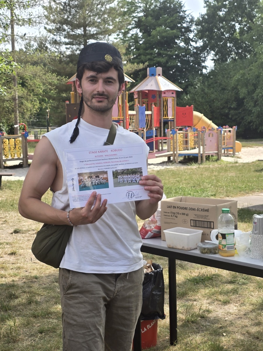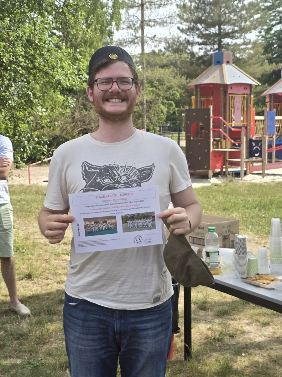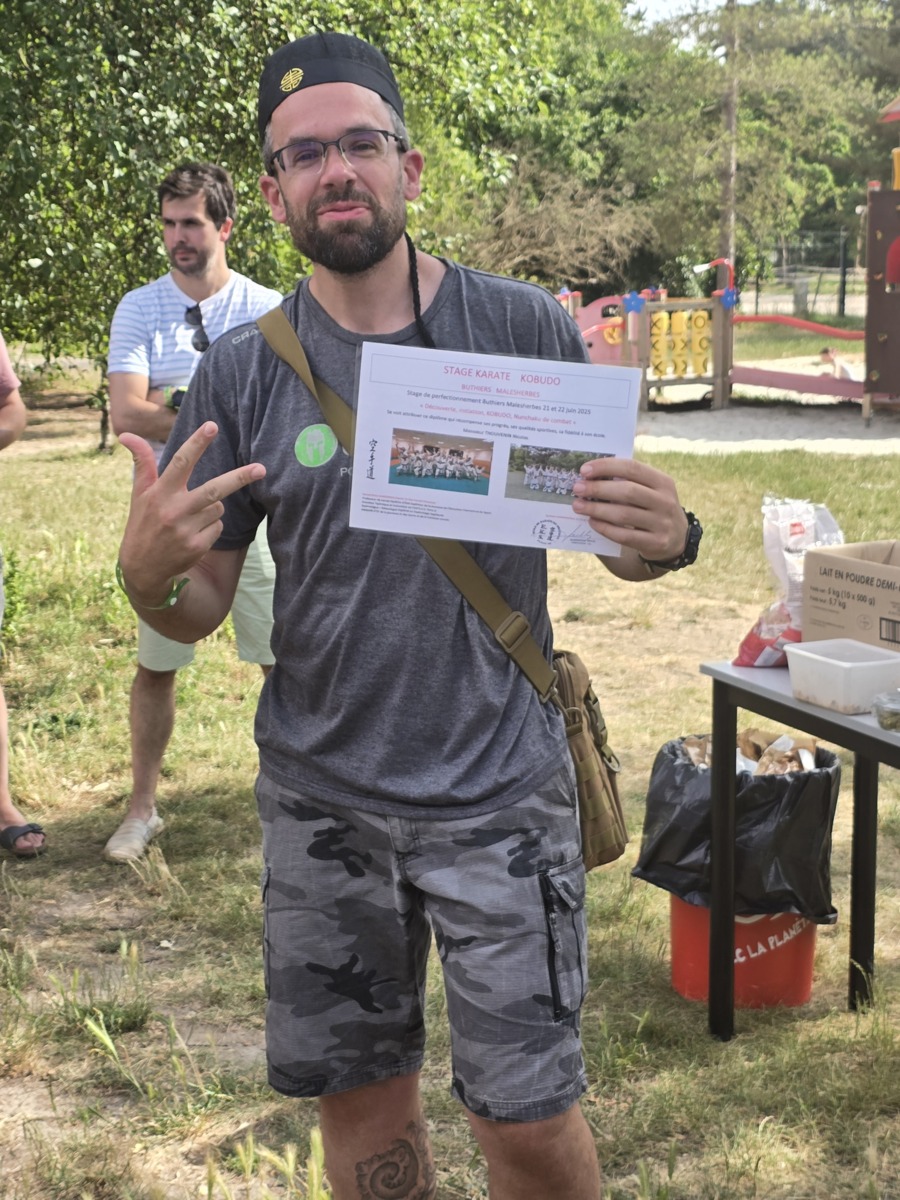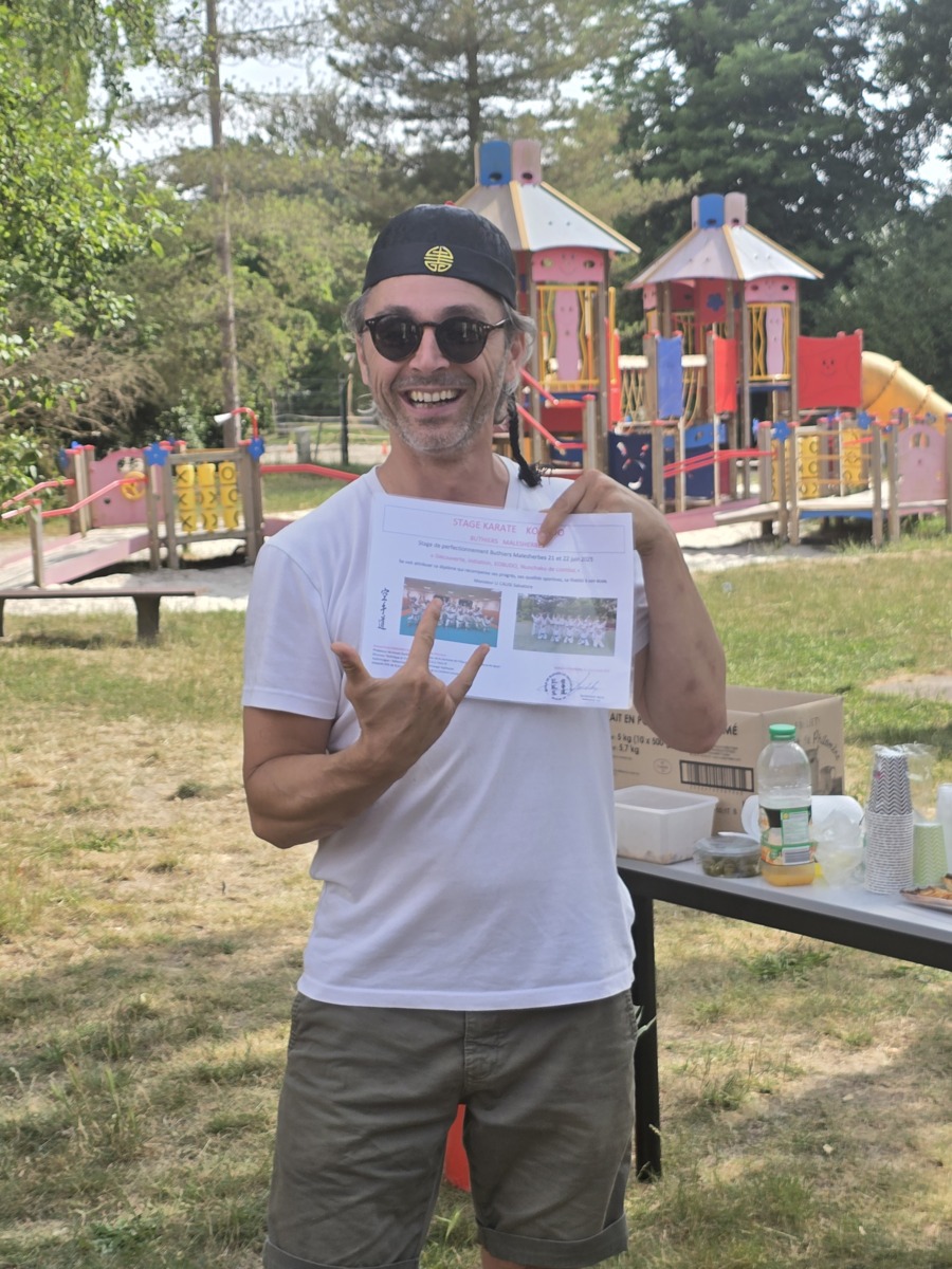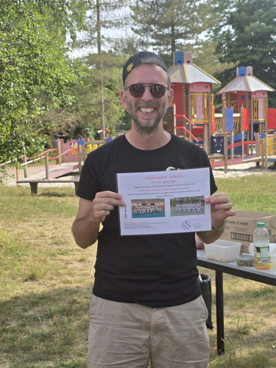 Remise traditionnelle de diplôme de fin de stage lors du 30eme séminaire à Buthiers Malesherbes par le Sensei Brice GARDEBIEN